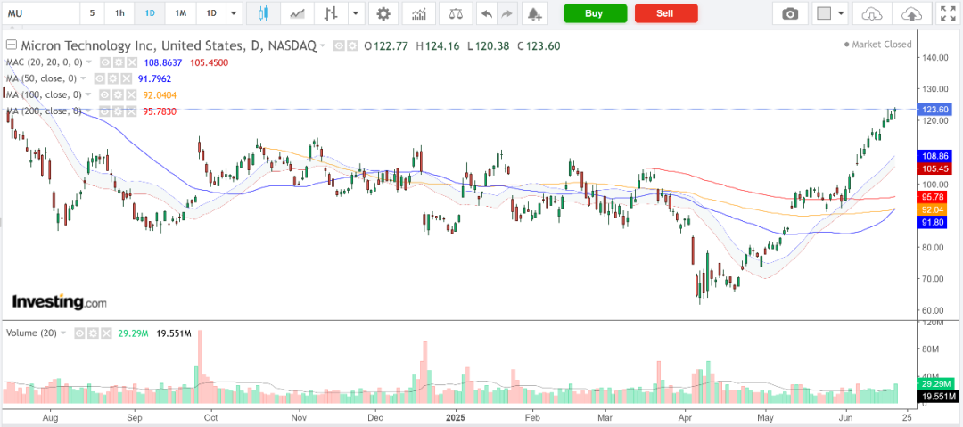 Micron股价走势图,来源:英为财情Investing.com