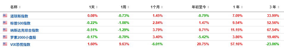 全周来看,标普500指数下跌约0.2%,由30只成份股组成的道指大致持平,科技股为主的纳斯达克综合指数上升0.2%。