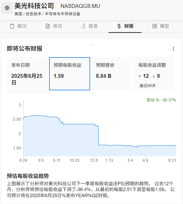 美光财报预测,来源:InvestingPro