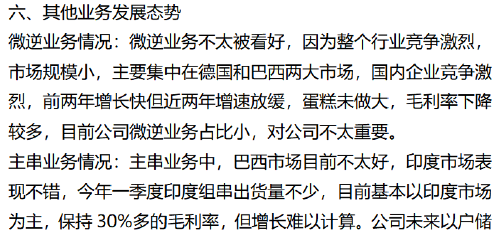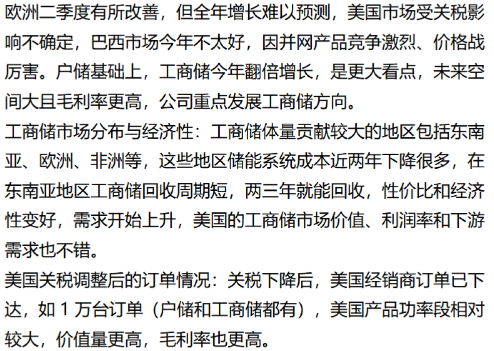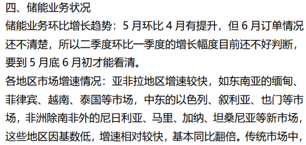 我查到最近的也就是5月份的调研,还提到2季度户储环比一季度会有20-30%的增长,同时工商储能也增长良好,整体来看2季度环比一季度会继续增长。