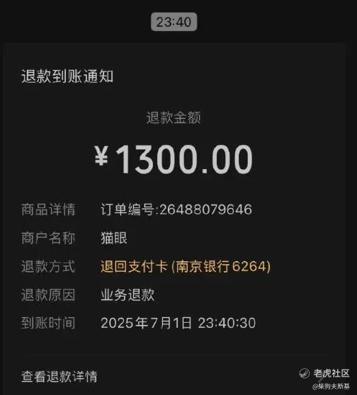 而用户也只收到了冰冷冷的来自银行的退款到账通知。