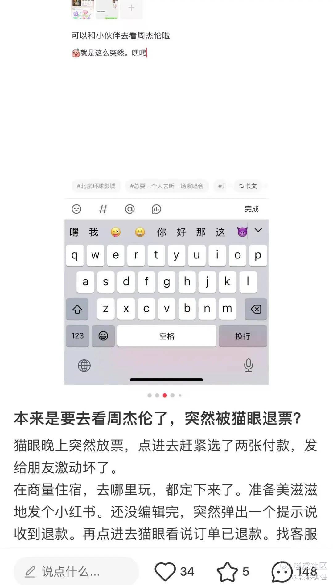 甚至,有用户表示,和朋友商量住宿,去哪里玩都订好了,准备美滋滋的发个小某书,结果没编辑完就弹出一个提示:收到退款,再点进去猫眼,订单已退款,找客服系统提示客服不在工作时间。