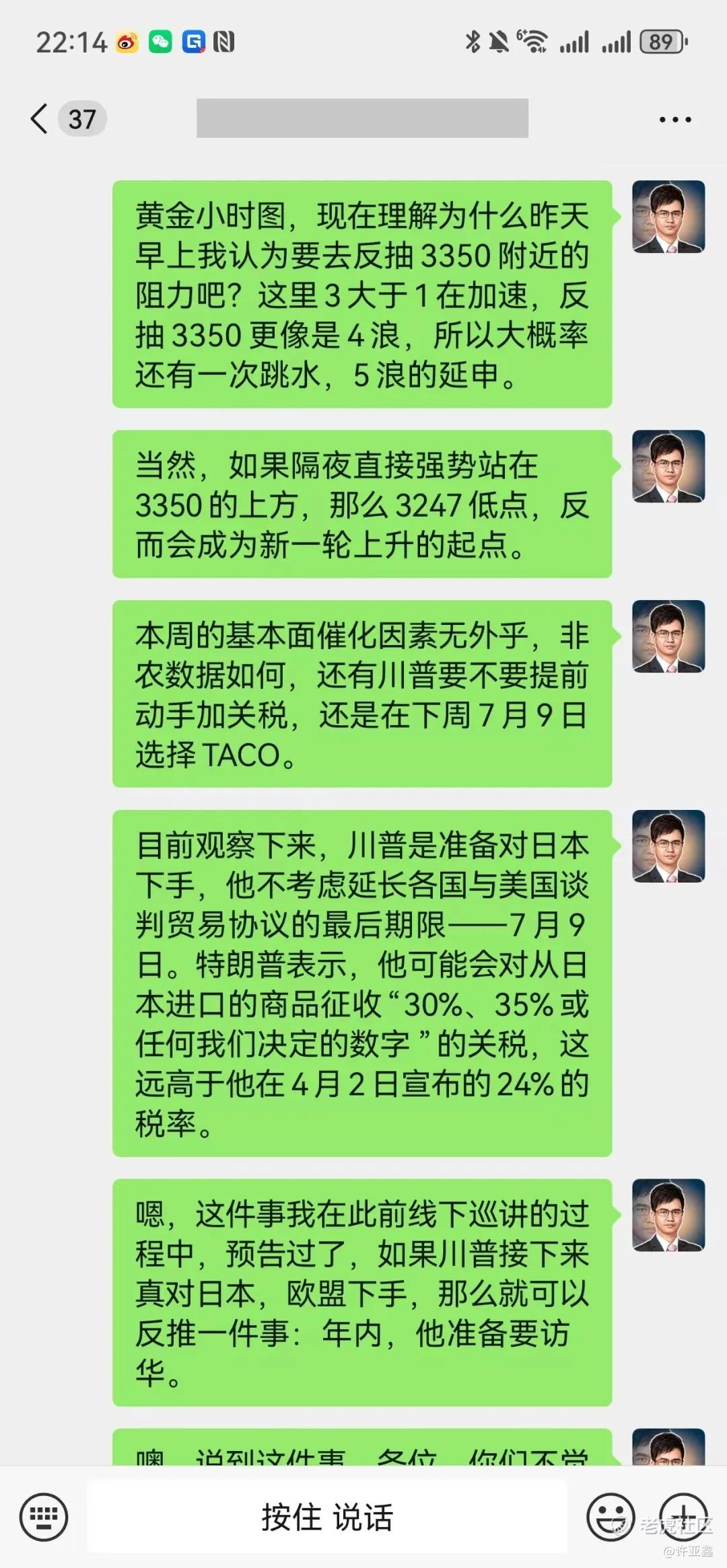 有关于黄金盘面的跟踪,如下图所示,今天亚洲盘的时候,我已经在学员群里作了提醒——
