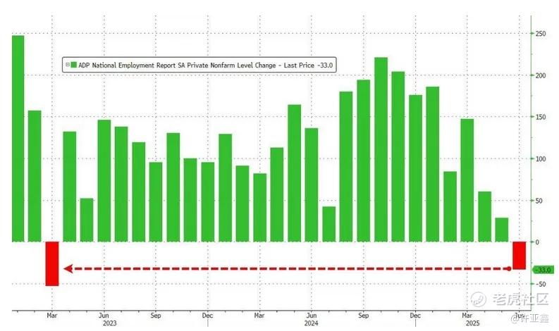 周三,ADP Research公布的数据显示,美国6月ADP就业人数减少3.3万人,预期9.8万人,而5月份的数据在向下修正后仅增加了2.9万人。此前没有任何一位经济学家预计会出现下降。