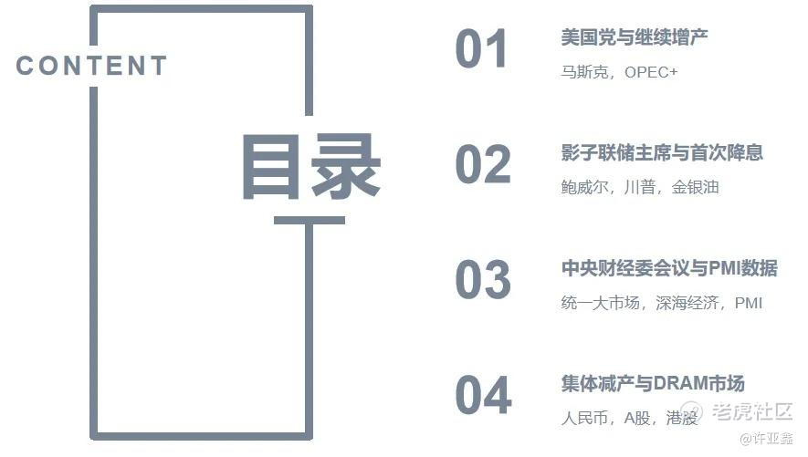 晚上的直播课,我分别从“美国党与继续增产”,“影子美联储主席与首次降息”,“中央财经委会议与PMI数据”,“集体减产与DRAM市场”四个方面解读了基本面的一些信息,并结合马斯克,OPEC+,鲍威尔,川普,金银油,统一大市场,深海经济,PMI,人民币,A股,港股等给出了接下来的布局思路。