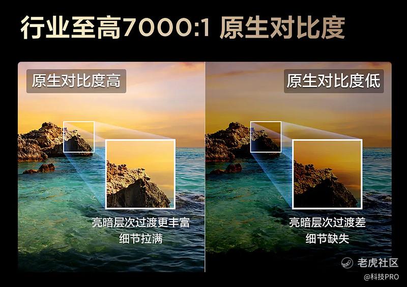 当下电视屏幕主要有两种,IPS硬屏与VA软屏。IPS硬屏采用水平电场排列,原生对比度仅为1200:1,高端一点的也就3000:1。相比之下VA软屏采用液晶分子垂直电场排列,可以轻松做到5000:1以上原生对比度。更高端的是华星HVA屏,可以做到7000:1超高原生对比度,是普通IPS屏原生对比度的五倍!