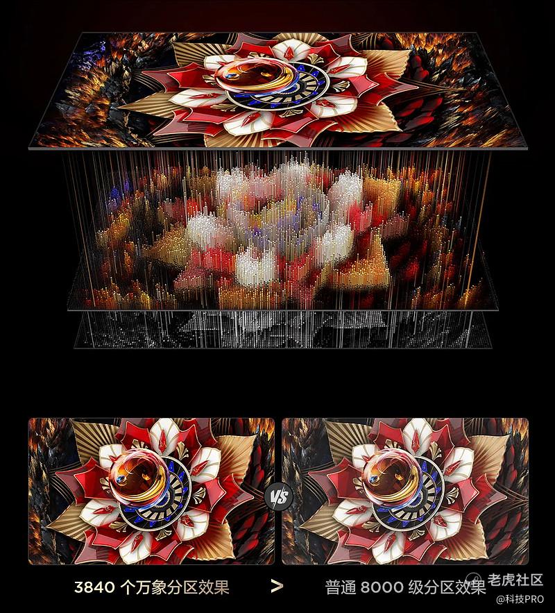 除消除边框问题外,Q10L系列还配置了TCL的杀手锏「万象分区」技术。什么是万象分区?从光源、光路、控光算法到最终的屏幕显示一套完整的、全链路的系统性光学解决方案。