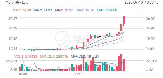 $元保(YB)$ 昨晚股价大涨14%,收报30.85美元,股价超越了上市第一日的28.99美元高点。