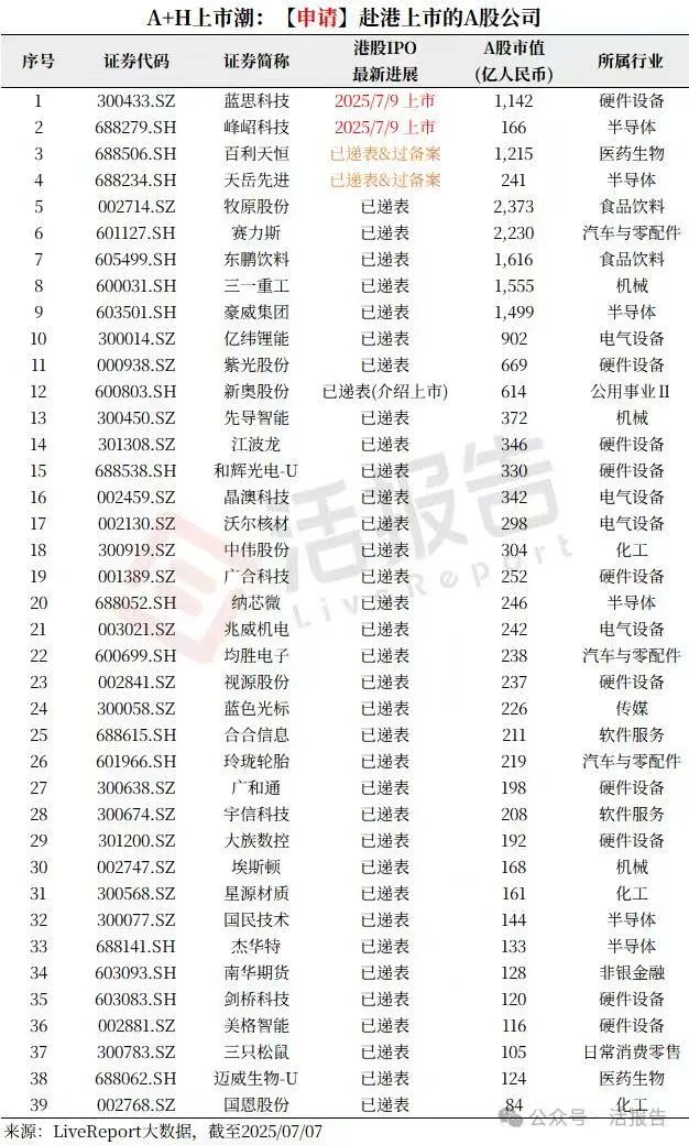 目前已经向港交所递交招股书的A+H股上市有37家,还有20多家A股公司宣布赴港上市计划。