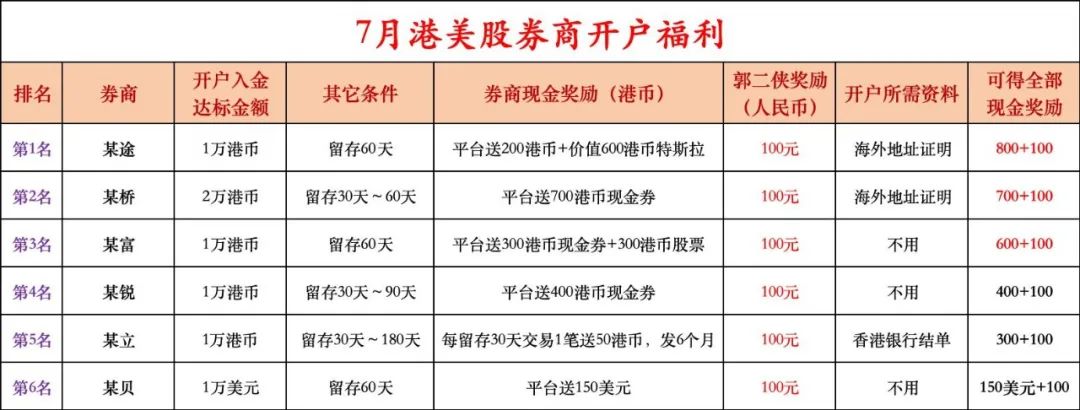 6月新股密集招股上市后,7月是IPO淡季,因为已经递表的公司需要补充上半年财报,8月就会恢复正常节奏,趁此期间大家可以开港股券商账户赚新户奖励,也为以后的新股做准备。