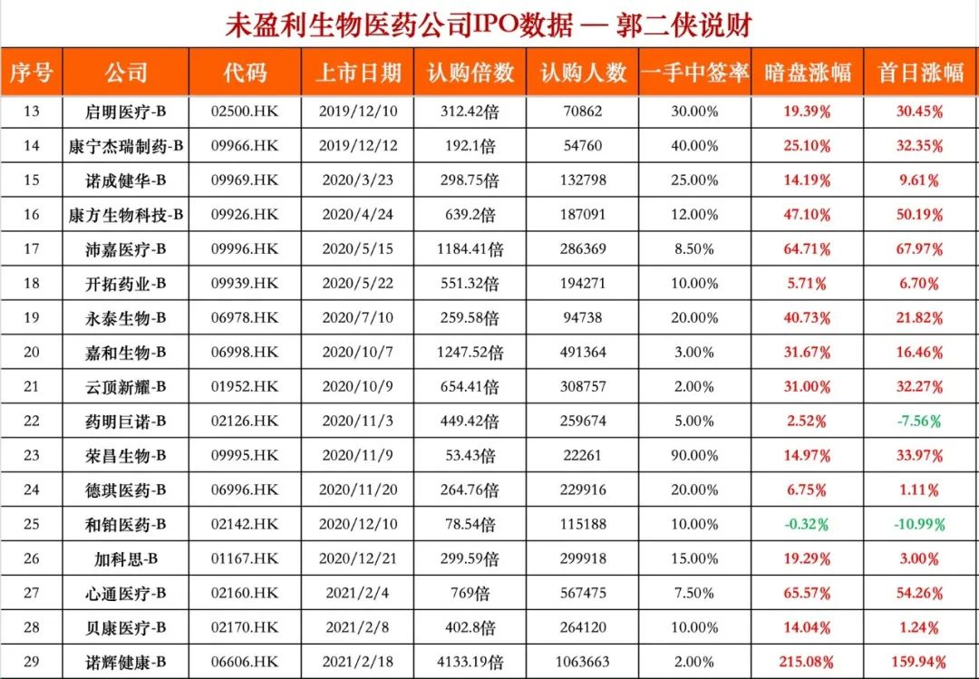 上图是2020年前后生物医药B股在港股上市的表现,后缀带B意思是还未盈利的生物医药公司,那时在打新人眼里,后缀带B就是牛B。