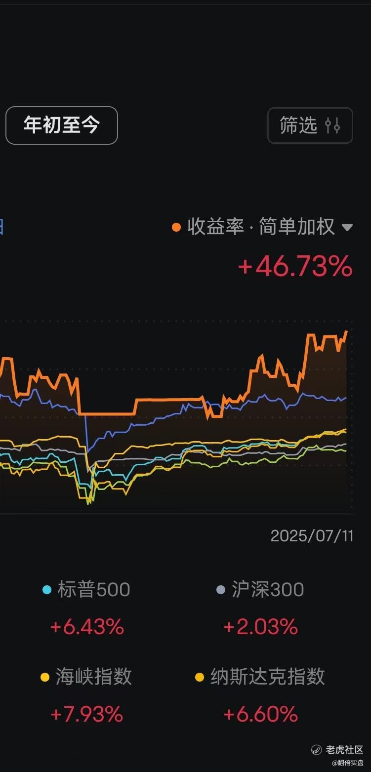 2025-07-12【实盘账户净值2025年第17次新高】又过去半个月!这半个月走的还是很纠结,半月前说“希望接下来能一路长虹新高不断[胜利] !”看来,单就投资这件事来说,大多数时候希望只是一种美好的愿望。不抱希望,遵守规则,随时应对才是正确的态度!话虽如此,但鉴于周五放量大涨有平台突破之势,接下来的看点依旧是看能否一路长虹不回调,走出高潮,屡创新高!【“事以密成言以泄败”+“黑暗森林法则”+“量子坍缩效应”决定了若是要赚亲自下场“淘金”的钱则需要闷声才能发财,而若是想赚“卖铲子”的钱才需要大声吆喝博流量。淘金与卖铲子,二者无关高下,只是目前的盈利模式属于亲自下场“淘金”,而非“卖铲子”!不“卖铲子”无需每日更新。更新原则:实盘账户净值创历史新高发净值曲线截图,建仓后上涨超过预期涨幅的61.8%发账户持仓K线截图】【活得久赚的久比赚得多更重要!时刻牢记必要时止损!止损就像“核按钮”平时几乎用不到但关键时刻必须要有。止损后虽然账面会亏一些但此时依然活着,活着就有机会再创新高!不止损类似闯红灯:可能大部分情况都能涨回来,但总会有1次被彻底消灭甚至还要负债彻底翻不了身!】【说明】做真实而又公开的实盘记录。真实,要求信息全部披露,最好代码也一并公开一览无余;公开,投资领域由于监管以及心理等各种因素所限,注定了不可能完全公开,很多东西根本就不适合在公开场合来讲。经深思熟虑,真实的,且适合在公开场合来讲的,只有账户净值从小做到大的“逻辑连贯性”,具体体现在净值曲线变动跟持仓K线走势的尽可能的连续展示。代码,尤其是单一持仓的实盘代码,是暂不适合公开展示的。实盘每次只做一只,这只要经过十几轮各种条件的严格筛选。一旦买入持有1-3个月。公开记录实盘资金曲线。不保证每天记录但绝对保证如实记录!净值创新高必更新!若隔夜实盘净值创新高则发文开头会标注【实盘账户净值202x年第N次新高】。