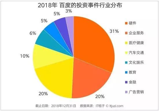 行业方面,百度的投资主要围绕“All in AI”战略进行,投资领域集中在智能硬件、物联网、车联网、自动驾驶、AI+医疗等领域。