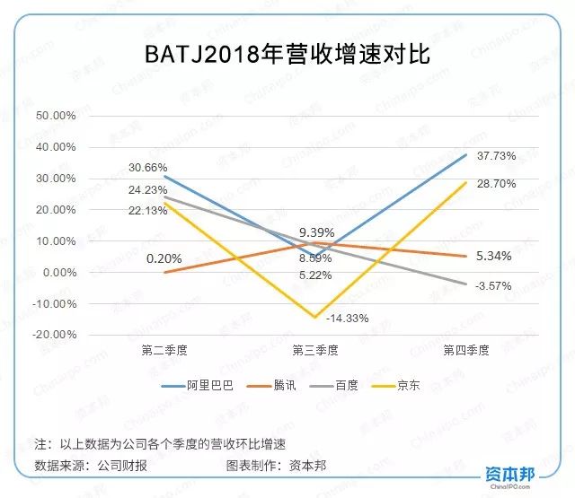 阿里巴巴的会计年度不同于其他三家——1月30日,阿里巴巴发布截至2018年12月31日的2019财年第三季度财报(实际为2018自然年第四季度)。
