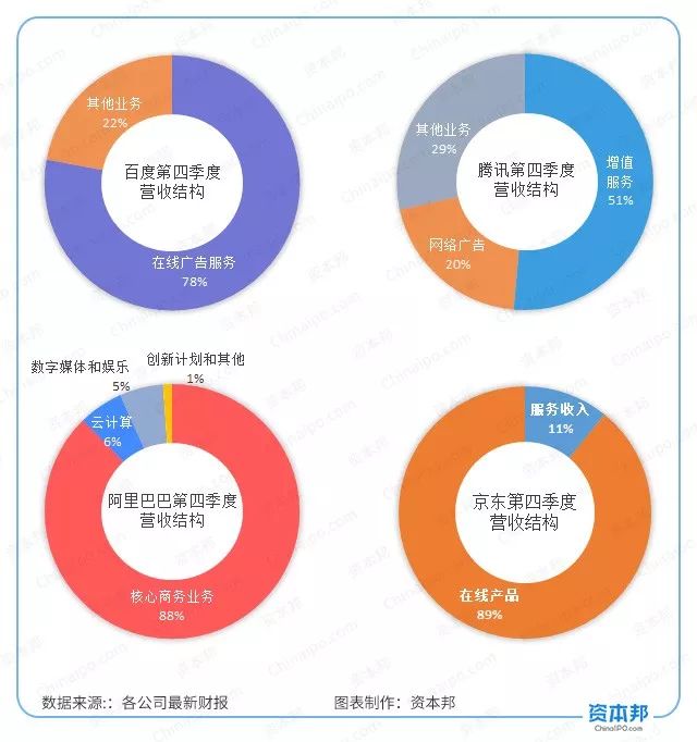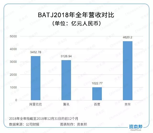 营收大小:京东>阿里巴巴>腾讯>百度