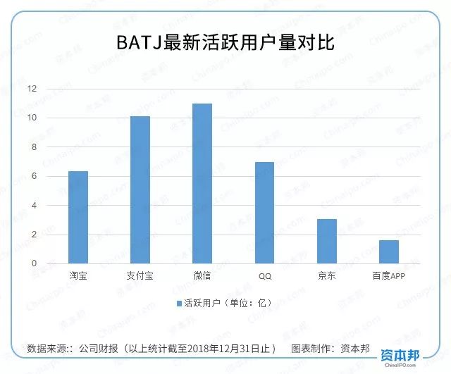 截至2018年12月31日,BATJ旗下主要产品的用户量情况如下:
