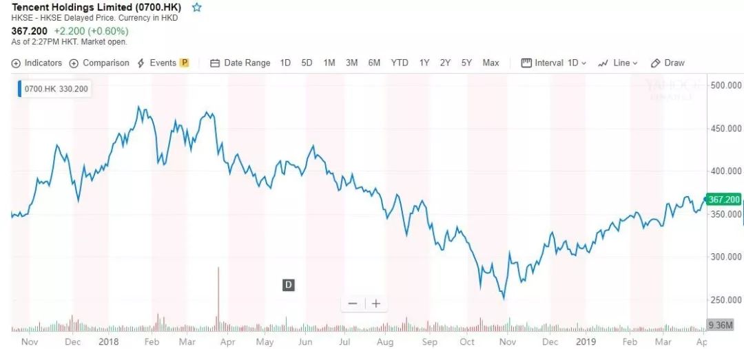 腾讯股价趋势(图片来源:雅虎财经)