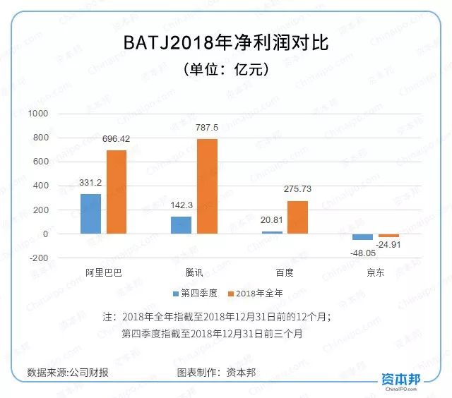 2018净利润:腾讯>阿里巴巴>百度>京东