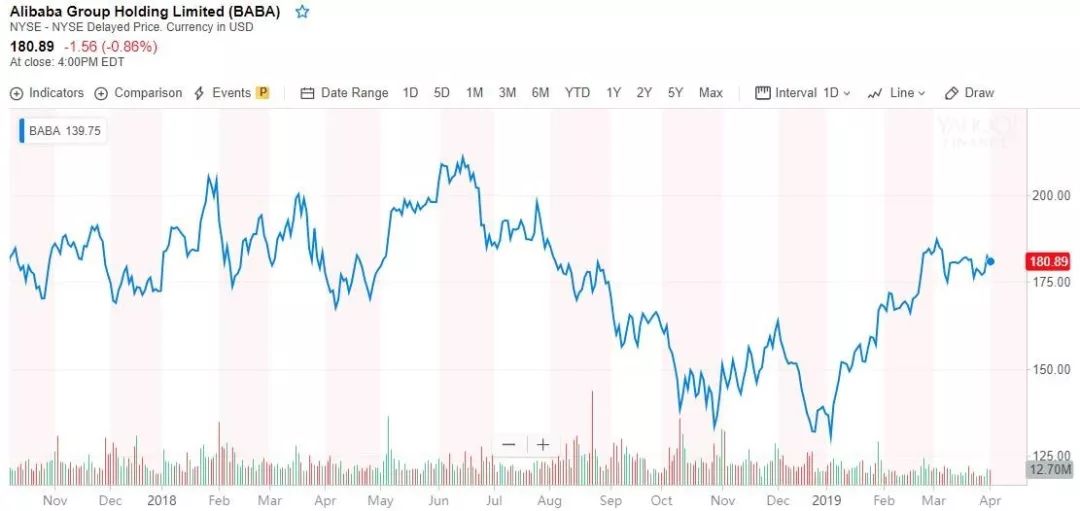 阿里巴巴股价则回升了31.98%至180.9美元,相比去年初跌幅缩小至4.16%;