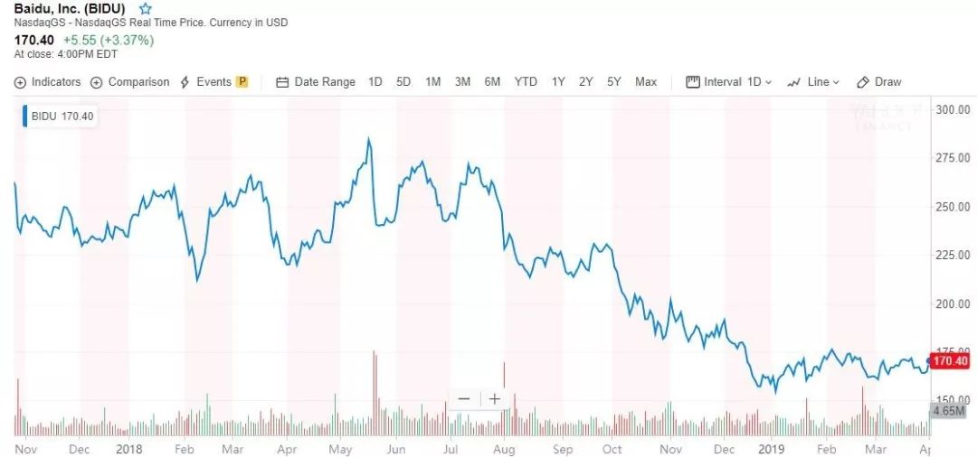 百度股价趋势(图片来源:雅虎财经)