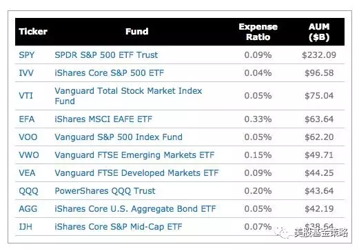 上图是美国市场上规模最大的十只ETF,显然,还是贝莱德和先锋争霸的熟悉场面啊。