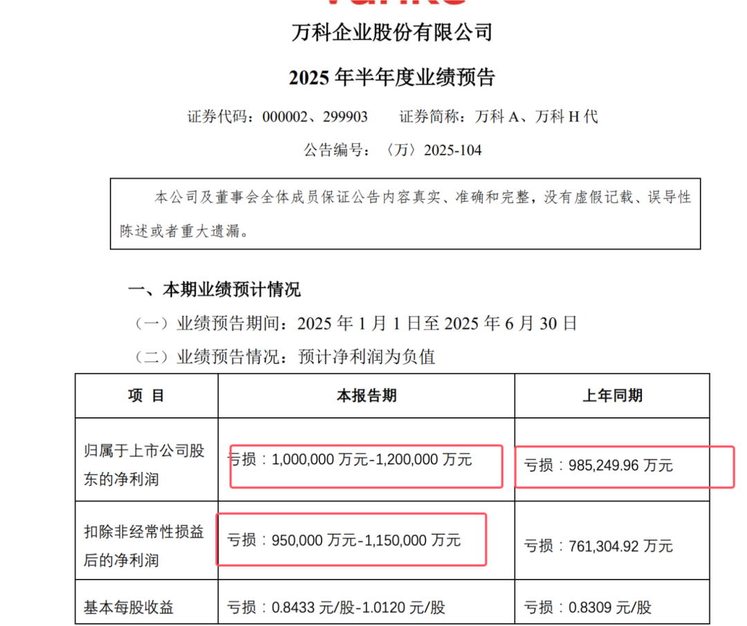 万科:对不起各位大哥大姐!上半年我们亏了 100 亿!