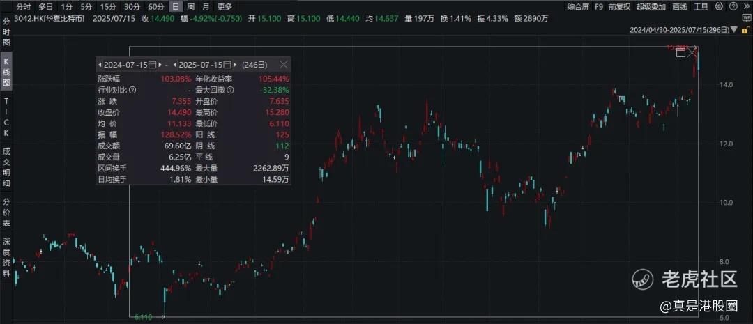 二是华夏比特币和华夏以太币是市场上流动性最好的ETF。截至2025年7月最新数据,华夏比特币ETF流通市值达20.9亿港元(约合2.7亿美元),产品自成立以来日均成交额为3200万港元,这一数据是同类产品的8-13倍。