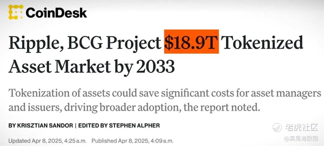 根据波士顿咨询的一份报告预测,到2033年,代币化资产市场的规模,可能要增长到18.9万亿美元。