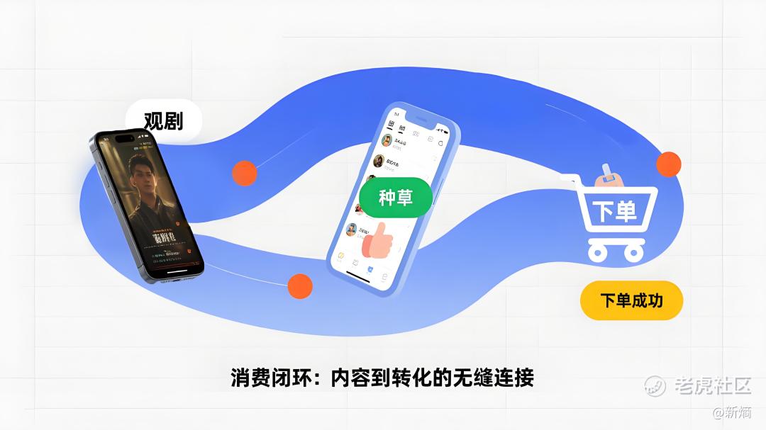 还有就是短剧能够为商品创造“沉浸式消费场景”。例如,通过内容+算法的组合拳,在短剧信息流中穿插商品推荐,实现“观剧-种草-下单”的闭环;也可以将短剧作为本地生活服务的流量杠杆,通过场景化植入(如比价功能、团购跳转)实现O2O闭环。