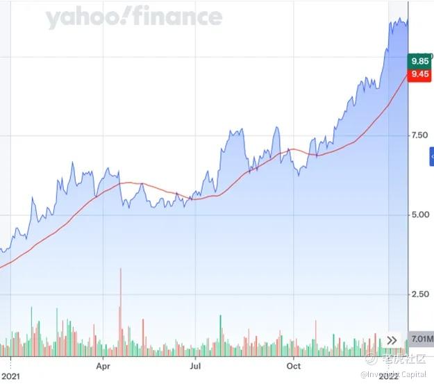 图片来源:Lynas21年与美国签订合同后股价走势,Yahoo Finance
