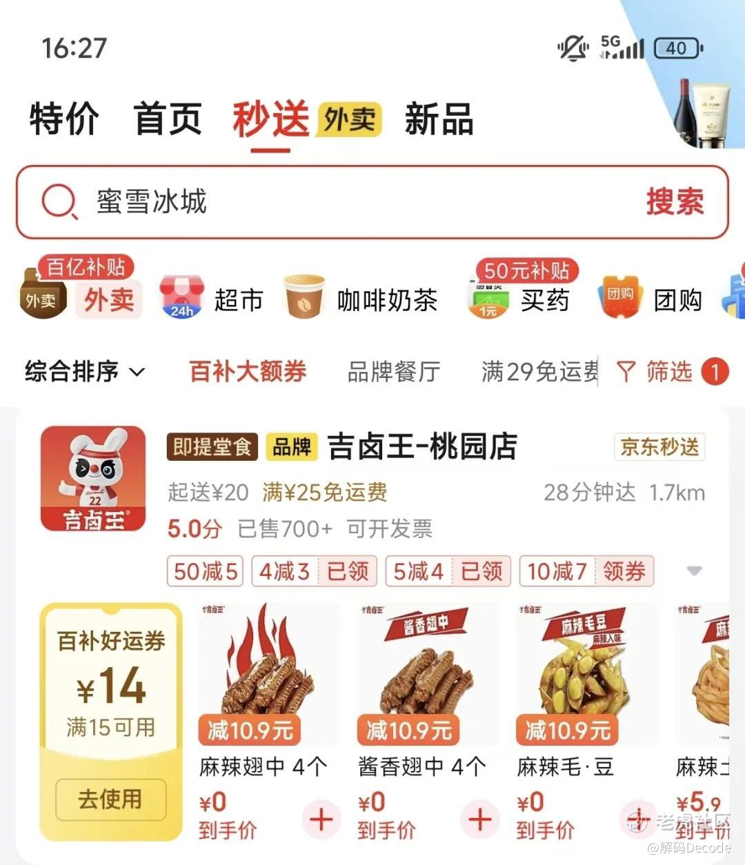 除了淘宝闪购,另外两家也没有放下促销。尤其美团,为了跟上节奏,仍要咬牙跟进,但它的手段多以美食兑换券为主。