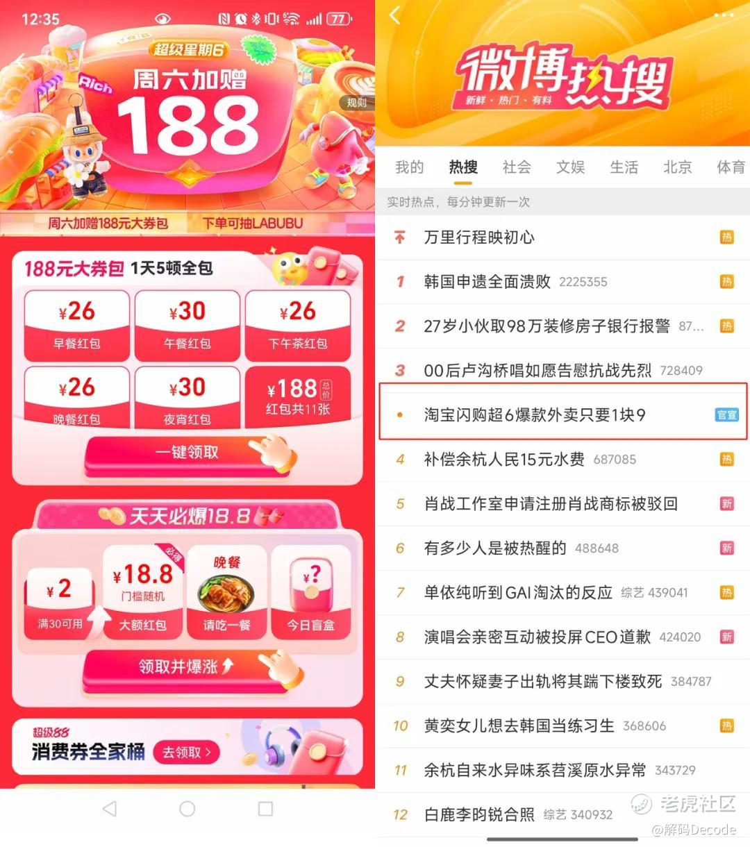 7月19日,淘宝闪购的“超级星期六”依旧保留,整体除“1.9元起吃外卖”和大额券弹窗等基操外,还有“16减15”、“必爆18.8元”等红包减免,力度大到#淘宝闪购超6款外卖只要1块9#一度登上微博热搜。