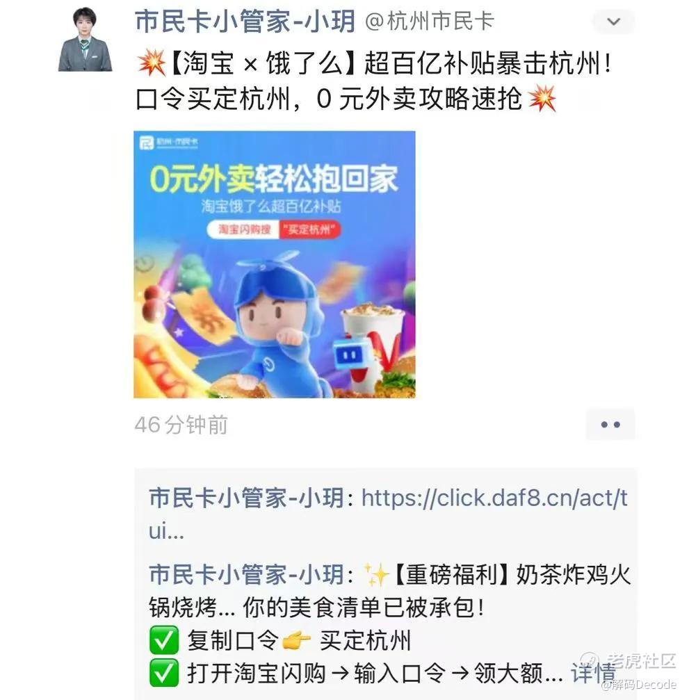 线上促销这一次淘宝闪购还把社群利用了起来,在一个叫做“饿了么闪购福利群”里,有组织者称“淘宝扫码下单就能返现2元”。补贴力度恐怖到,相当于1.9元下单奶茶,返现金2元,平台还要倒贴1毛。