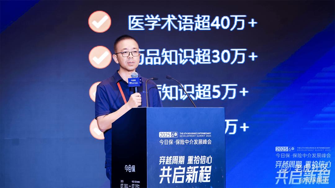 7月18日,“2025今日保·保险中介发展峰会”在北京隆重召开,元保保险经纪荣膺“年度保险中介值得信赖品牌”称号,并作为行业标杆案例入选今日保《2025中国人身险中介市场生态蓝皮书》,元保集团联合创始人兼CTO、元保保险经纪总经理王波受邀参会,带来「保险行业大模型元保实践分享」。