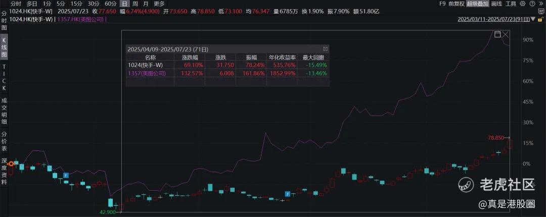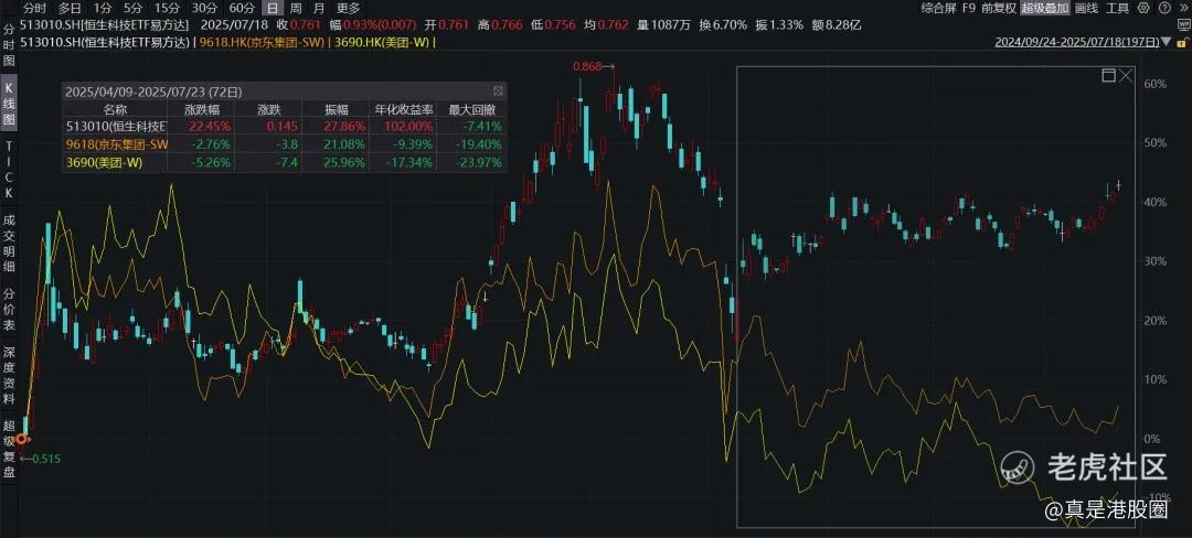 除了这3家激烈竞争,能看到很多资金在二季度不断配置AI应用相关的公司。例如,4月份低点以来,美图翻了一倍,快手涨近70%,而大市值权重的互联网股还没涨,当下是通过恒生科技ETF易方达(513010) $恒生科技ETF易方达(513010)$ 迎合市场情绪改善的好时机。场外的朋友也可通过联接基金:013308 (A类)/013309(C类)来参与港股下半年的行情。