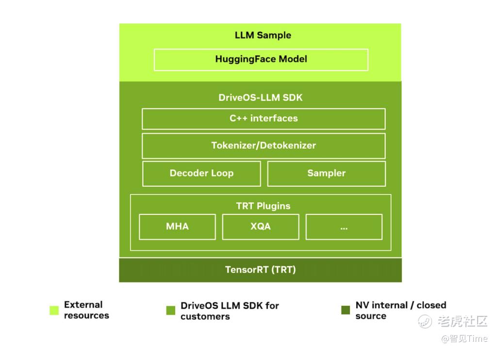 这些组件共同支持在多个 NVIDIA DRIVE 平台上实现灵活、轻量级的高性能 LLM 部署和定制 (图 1)。