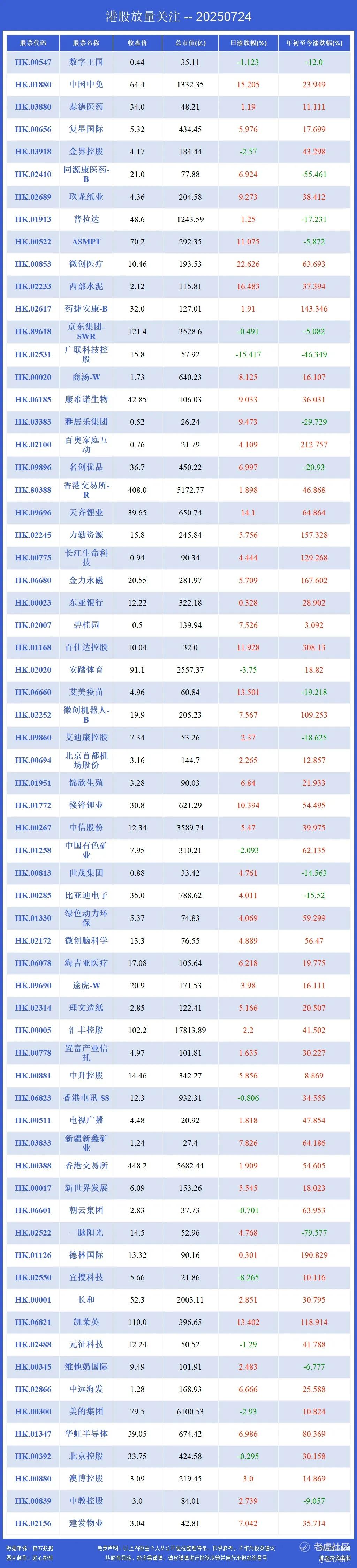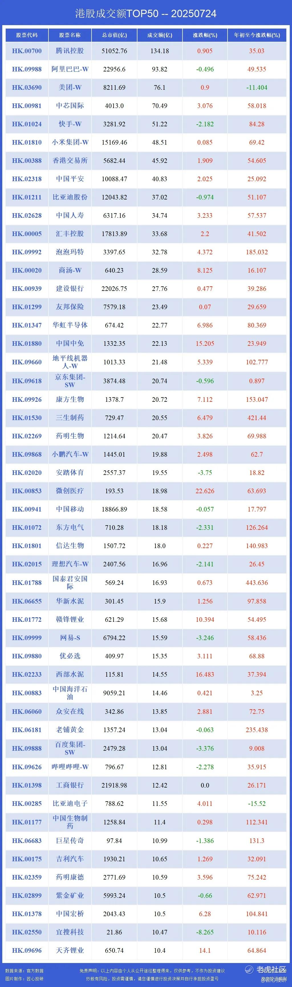 今天00020商汤-W,01880中国中免,02020安踏体育,00853微创医疗,01772赣锋锂业,02233西部水泥,00285比亚迪电子,01378中国宏桥,02550宜搜科技,09696天齐锂业上了成交额榜单