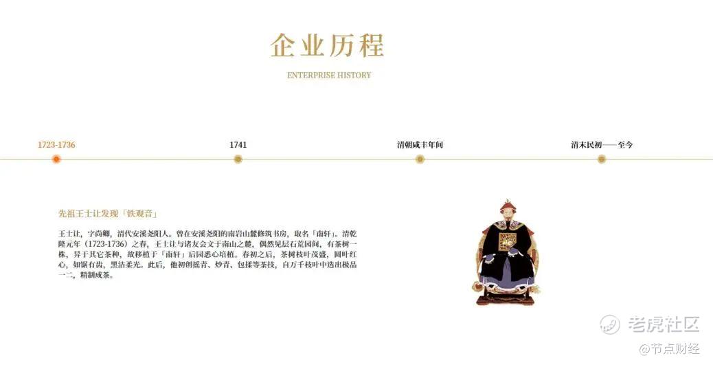 八马茶业的创业故事源远流长,据官网信息显示,创始人王文礼家族的渊源可追溯至清朝雍正年间。其先祖王士让发现了名茶“铁观音”,由此家族先辈创立“信记茶行”,沿海上丝绸之路行商。公司董事长王文礼更是以国家级非物质文化遗产铁观音制作技艺第十三代传承人的身份示人,为品牌赋予了深厚的文化底蕴和正统性。