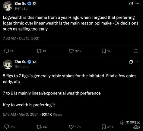 20 年代初期的加密文化,正是 “头奖悖论”(Jackpot Paradox)的活生生写照。SBF(Sam Bankman-Fried)曾在一条推文中开启了有关 “财富偏好类型” 的讨论。