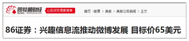 65代表138亿美元市值,假设微博2017年净利润再翻100%,那依旧是53倍市盈率,如果是花旗的70美元,和摩根大通的76美元,那就是55倍和59倍了。
