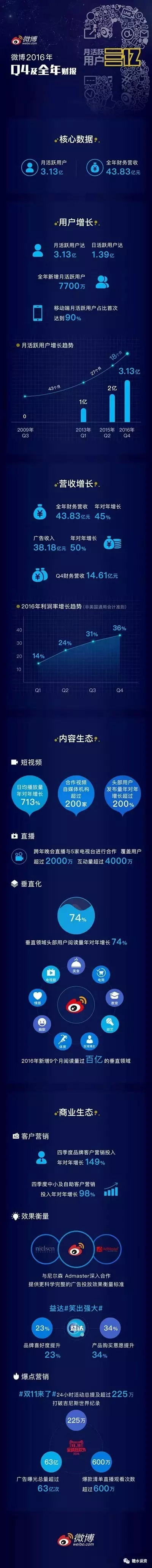 1. 微博17年全年,营收涨40%(比2016年37%还牛)