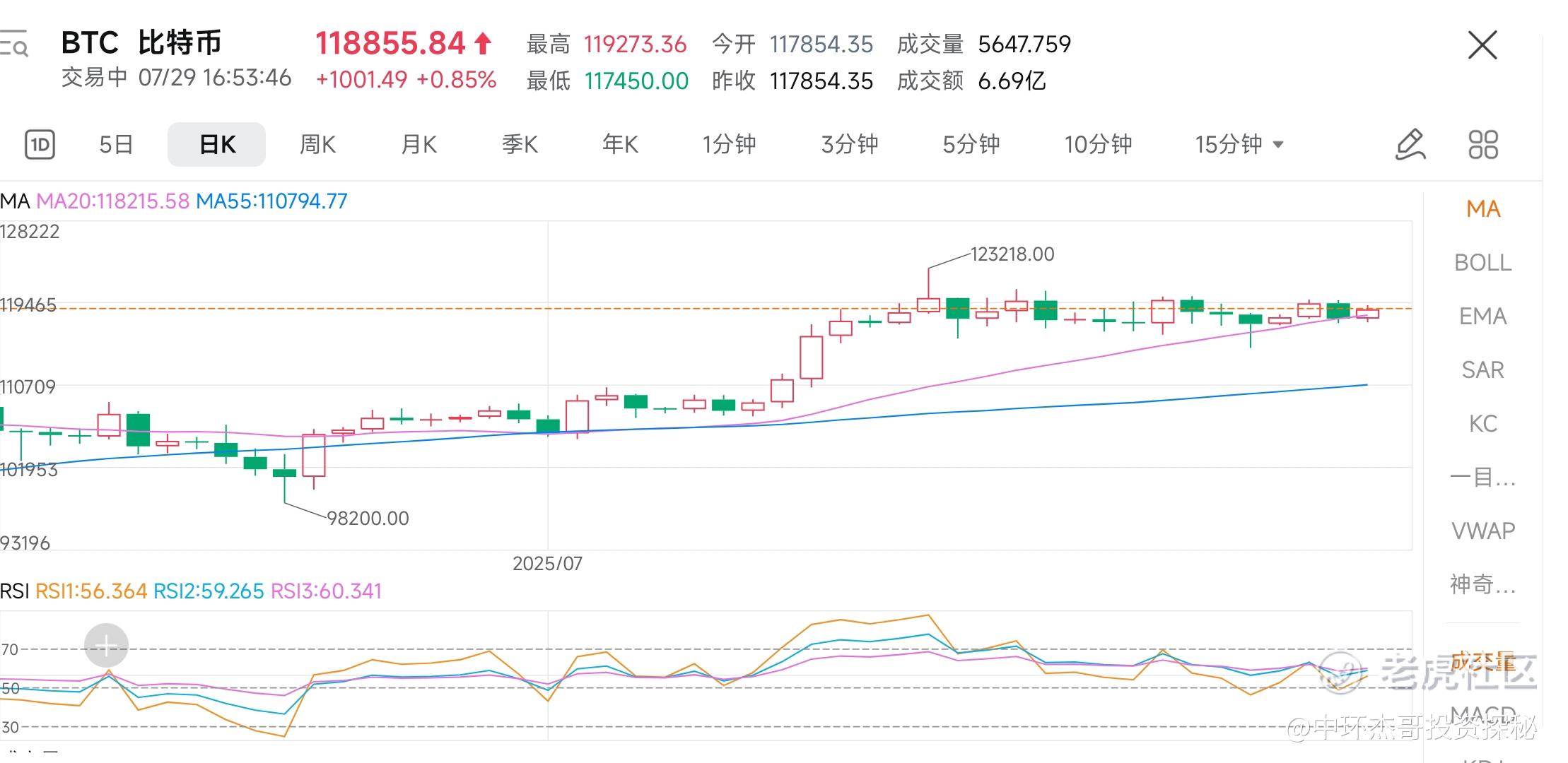 比特币,我们知道,其于7/25,寻求20日均线的支撑,在得到较好的反馈后,连续上行,