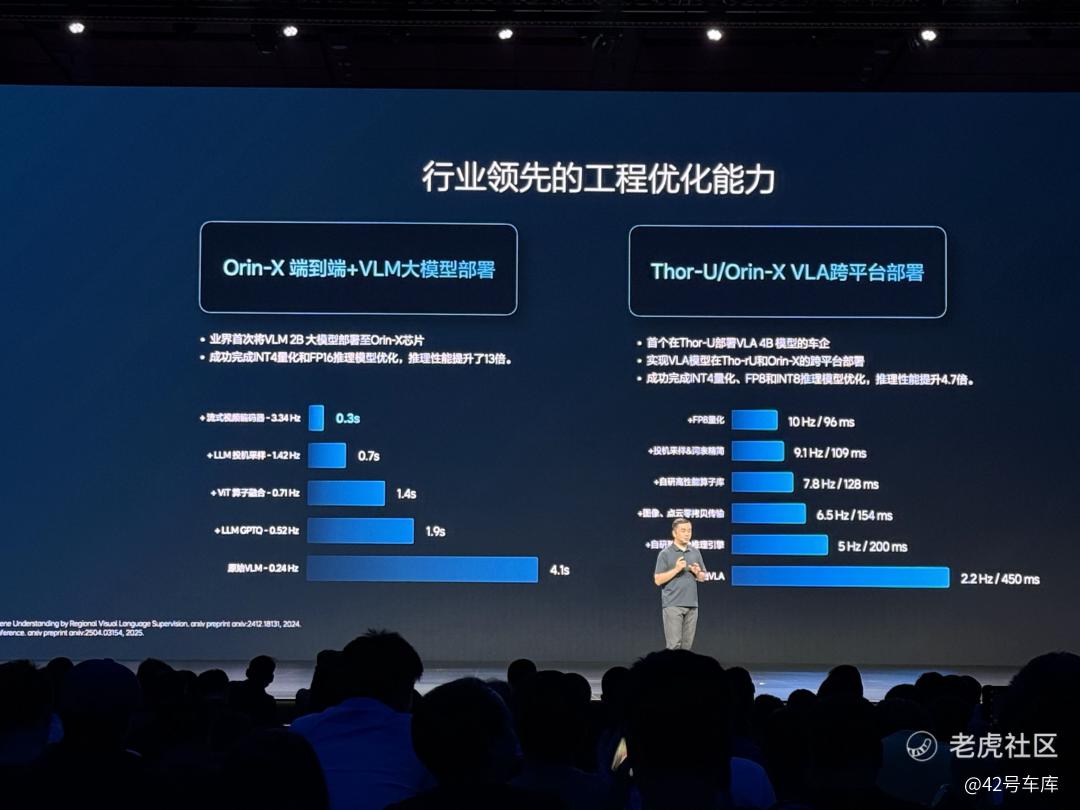 后续的推送节奏也是同步的,Orin 平台和 Thor 平台都是同步来推送。至于什么时候能拉开差异,我们现在肯定不会做这种差异化。但是随着下一步的迭代,如果我们在 INT4 的量化上有一些突破,那个时候可能会有一定差异,但是现在谈这个还为时尚早。