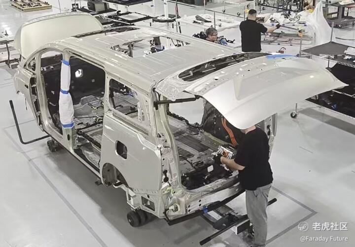 FF ieFactory California可配置柔性生产线,支持包括FF和FX在内的系列车型制造需求,并具备多车型混线生产或装配能力。