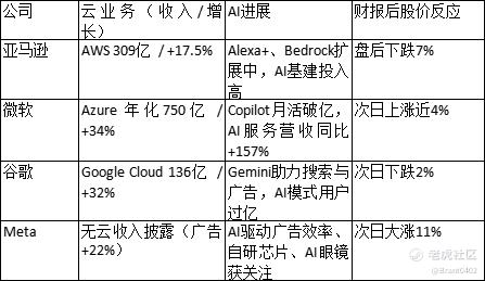 其次,AI方面虽然投入巨大,本季度资本支出高达314亿美元,主要用于AI和云基础设施建设,但目前尚未看到与微软或谷歌类似的商业化成果。