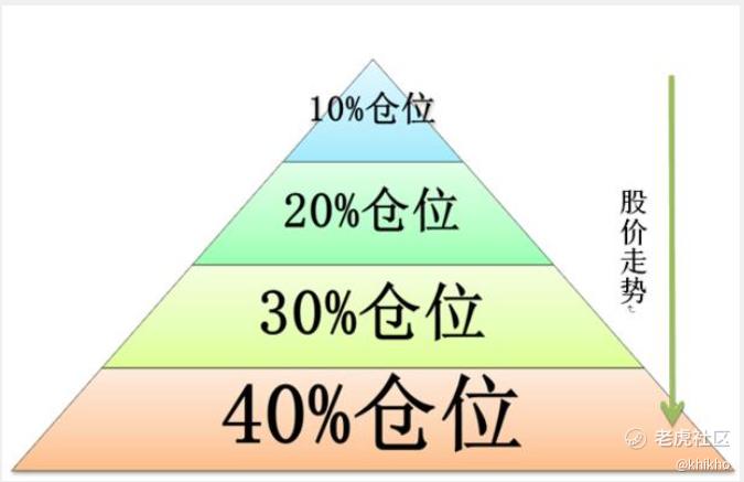 就像图里展示的,首先我们可以将资金分层。把打算使用在某一只股票的资金分为4个部分,按10%、20%、30%、40%,分成四份。然后设定目标买入点位,可以根据下跌幅度或者估值区间来设置相应的目标点位。比如开仓的时候买个10%的资金量,这只股票下跌5%的时候加20%的仓位,如果再次下跌20%加仓30%的资金量,如果再次下跌15%-20%,直接打出最后40%的子弹。以上的幅度只是一个参考,实际可以根据每个人不同的风险承受能力,调整相应的下跌幅度和加仓计划。我觉得这个方法,需要我们对某一只股票又很大的信心,不然跌了2次3次,心态都崩了,哪里还敢加仓呢 [捂脸]