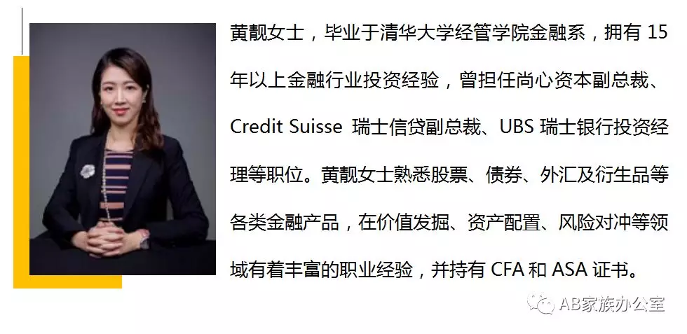 作为在证券市场磨砺了15年的价值投资践行者,黄靓女士对“价值投资”理解得十分通透,在实际运作中也挥洒自如。黄靓女士从清华金融系毕业后,先后去了瑞士银行(UBS)和瑞士信贷银行(Credit Suisse)——全世界最好的两家私人银行,在那里工作了8年,她为中国最顶尖的高净值客户们管理资产。每个客户的投资目标、风险偏好都不一样,在那个阶段黄靓女士积累了很多资产配置和交易层面的经验。