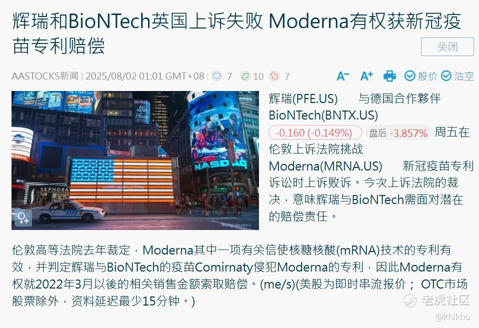$辉瑞(PFE)$ 前几年是可以跟Moderna干仗的优质疫苗股,Pfizer Inc 成立于1849年,是全球历史最悠久、规模最大的制药公司之一,总部位于美国纽约。他们公司拥有约 81,000名员工,超级大厂了呢。他们的产品销售遍布 200多个国家和地区,在全球设有 37个制造基地,当年我们新加坡的疫苗除了Moderna 就是 辉瑞,几乎都是这2种。可惜看新闻说,他们还是干不过Moderna啊。