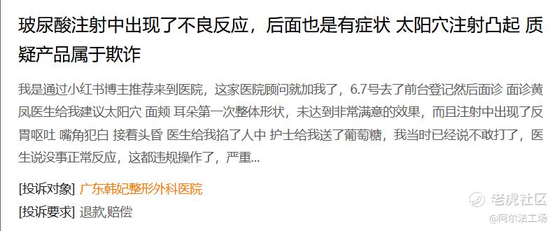 在黑猫投诉上,也存在着多条关于广东韩妃整形外科医院的虚假宣传、违规操作的投诉,多位消费者质疑其产品的真实性及安全性。