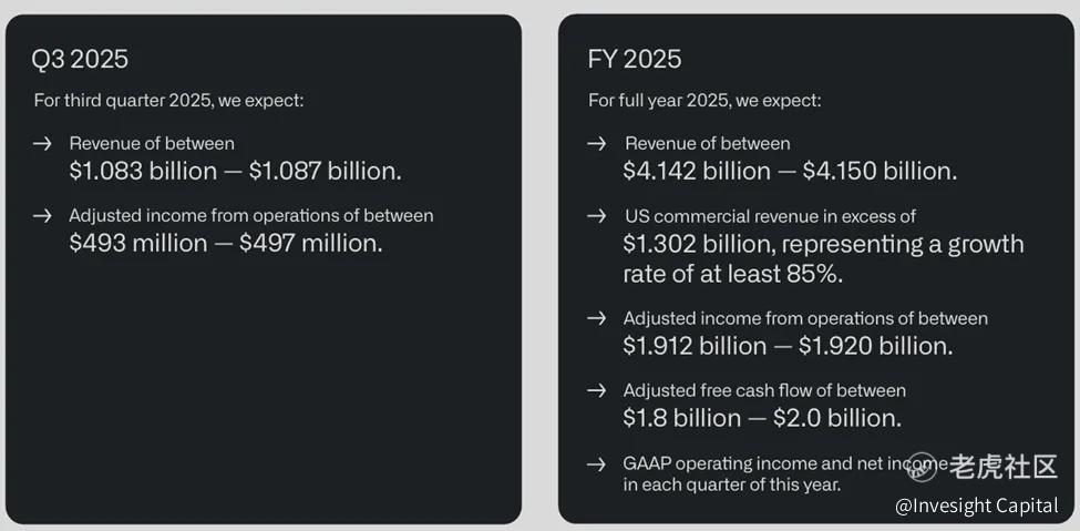 Palantir正在以前所未有的速度兑现“AI平台”的增长潜力。凭借政府级别的数据整合能力和日益增强的商业化变现能力,公司在AI大潮中率先卡位成功。虽然当前估值水平已经远超大多数科技股,存在透支未来预期的迹象,但在高用户增长与盈利持续兑现的双重推动下,其股价短期内或仍有支撑。未来走势将在估值逻辑与业绩兑现之间寻求平衡。